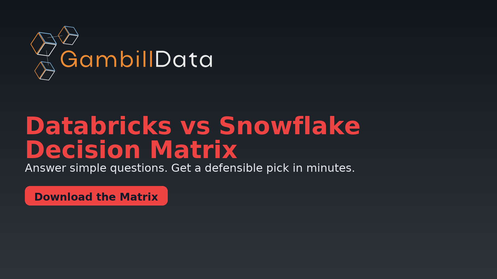 A no-BS, auto-scoring matrix to choose Databricks or Snowflake. Answer dropdowns, set weights, and get a defensible recommendation fast.