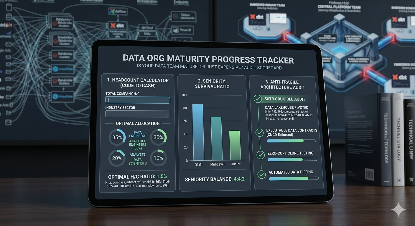 The Code-to-Cash Headcount Formula: Calculate the exact ratio of Data Engineers, Analytics Engineers, and Analysts you need based on your total company size. Stop funding internal theater and fix your headcount bloat.